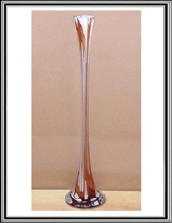 B - Sklenená váza 80 cm hrubá biela s červeným dekorom BČE80