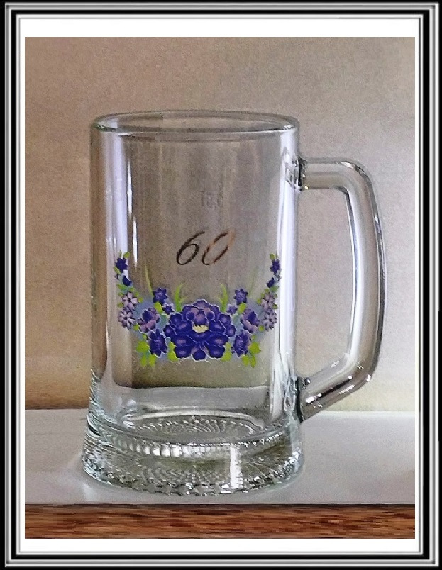 Hrubý pollitrový sklenený krígeľ výročný 60-tka modrá s ceichom