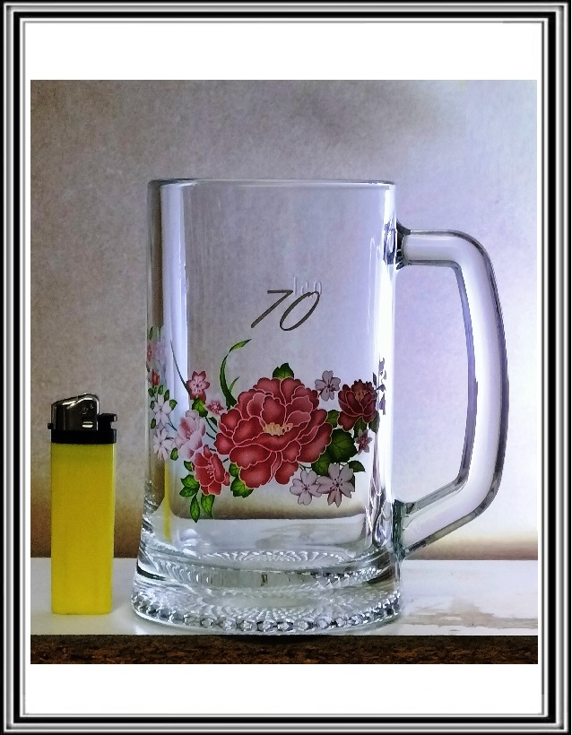 Hrubý pollitrový sklenený krígeľ výročný 70-tka
