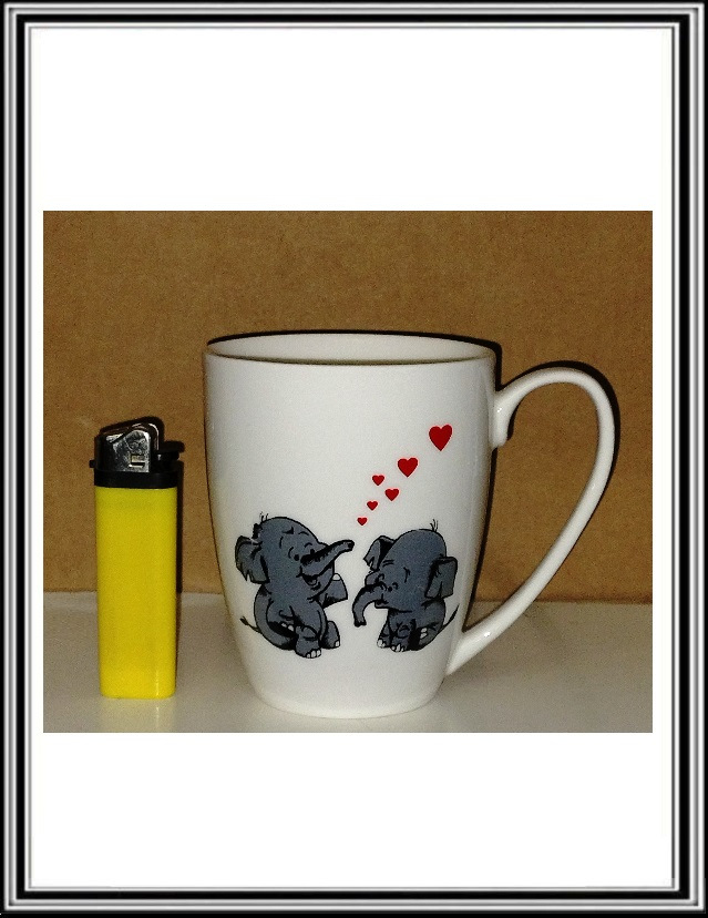 Keramický hrnček Sloníky pre šťastie so srdiečkami320 ml