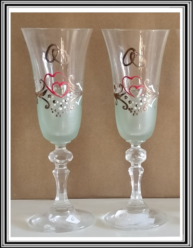 Sadá 2 ks svadobných bacuľatých pohárov č 22A VTÁCI a KORÁLKY