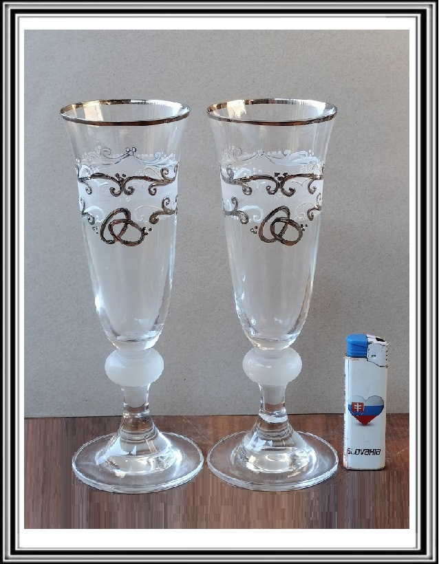Sadá 2 ks svadobných bacuľatých pohárov č 22A VTÁCI a KORÁLKY