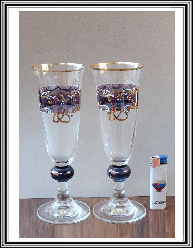 Sadá 2 ks svadobných bacuľatých pohárov č 22A VTÁCI a KORÁLKY