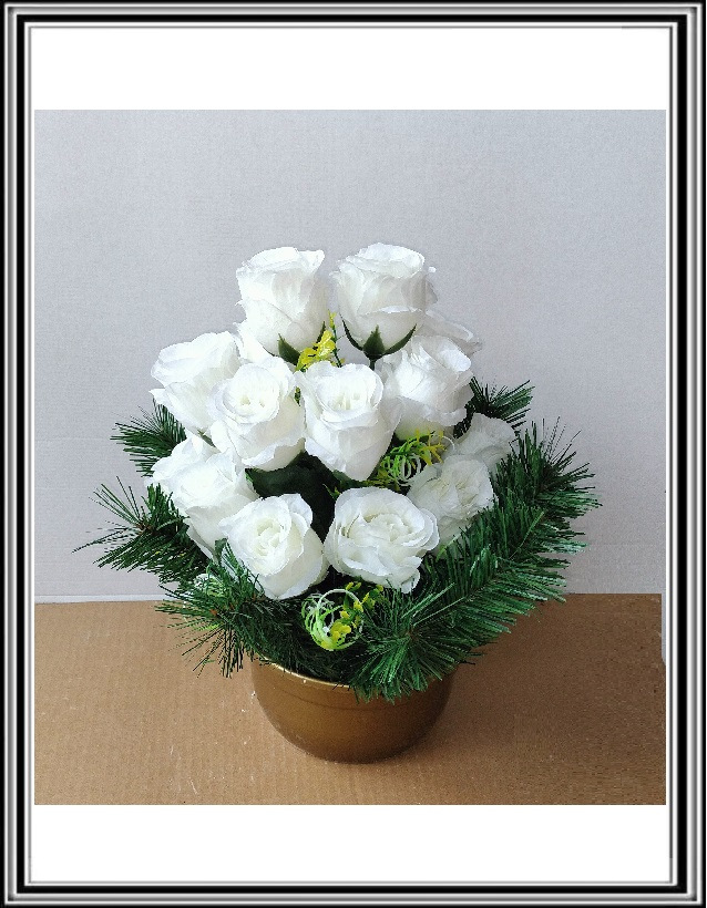 Umelé kvety v miske 18 hlav zaťažené DUPEĽ č 181 - biele
