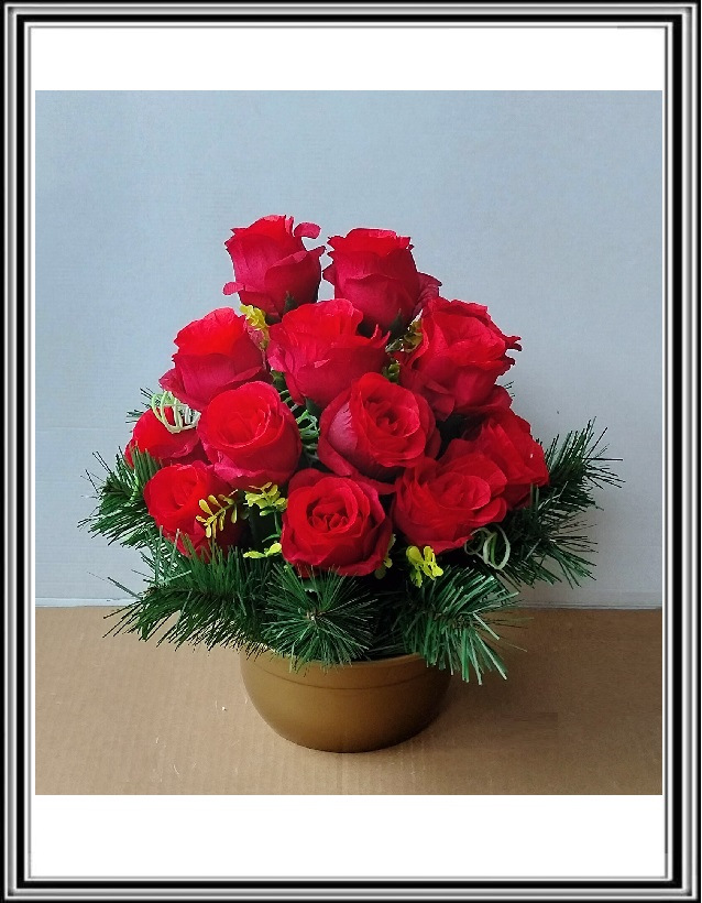 Umelé kvety v miske priemeru 18 cm - veľké a husté -Bielo červené