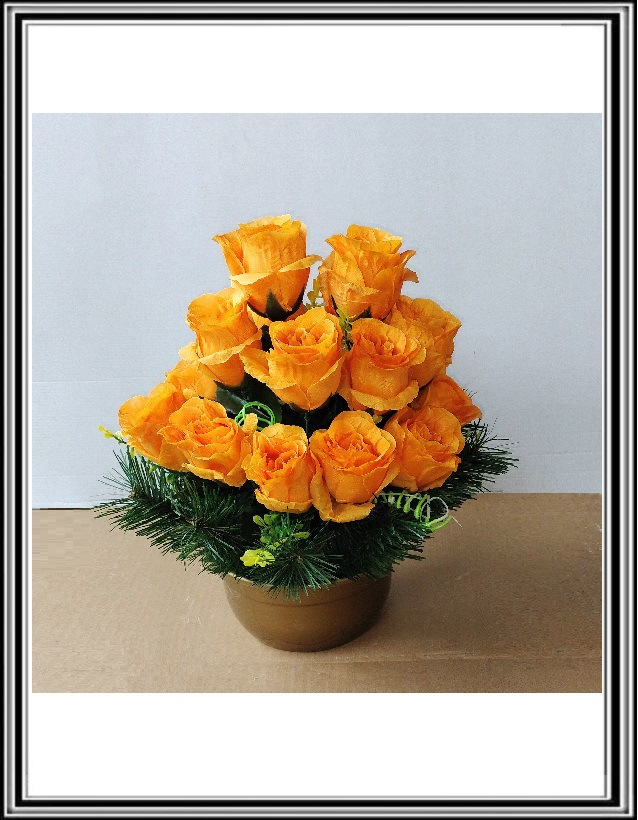 Umelé kvety v miske 18 hlav zaťažené DUPEĽ č 181 - žlté