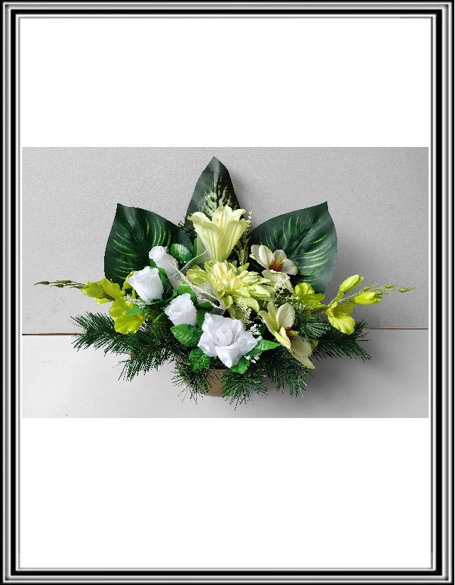 Umelé kvety v miske s gladiolou zaťažené bielozelenéč. 225