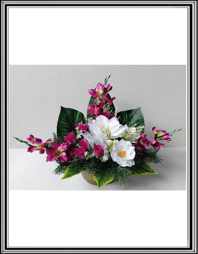 Umelé kvety v miske s gladiolou zaťažené ružovéč. 227