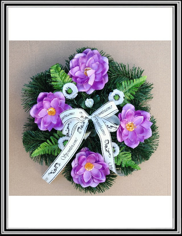 Venček stredný 35 cm- 4 fialové kvety +doplnkyVS -6-15